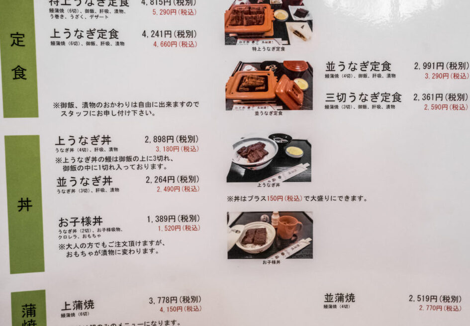 うなぎの福田 メニュー一覧
