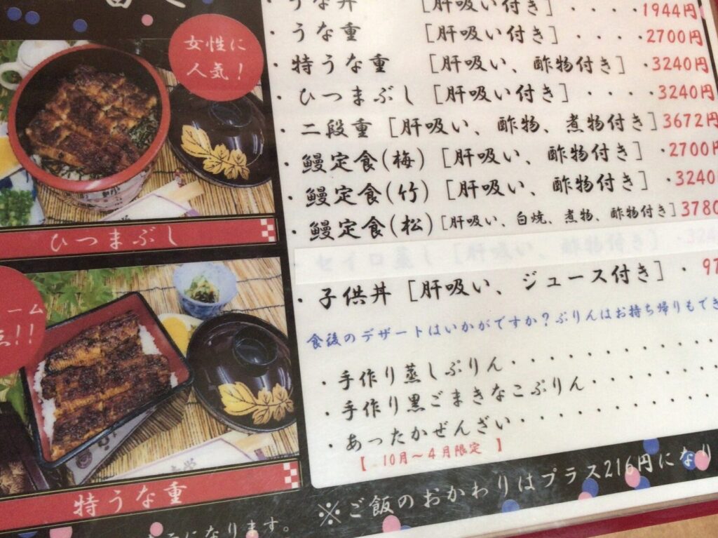 このように、「うなぎの幸栄」では四季折々で異なる魅力的なメニューが豊富ですので、お越しになる際にはぜひチェックしてみてください。